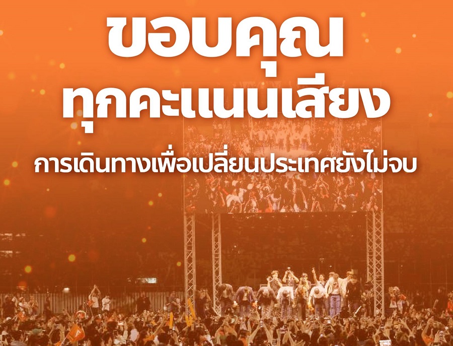 พรรคประชาชนขอบคุณประชาชนที่ออกมาใช้สิทธิ์ ทุกคะแนนความไว้วางใจและเจตจำนงอันแรงกล้าที่ต้องการเห็นประเทศไทยก้าวไปข้างหน้า