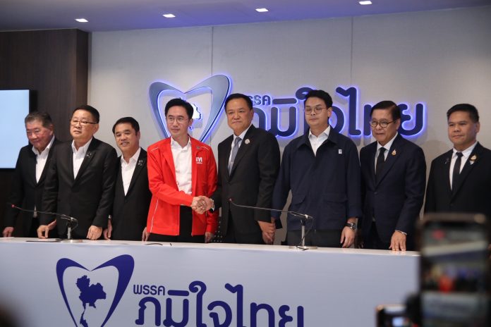 จับตาการจัดตั้งรัฐบาลสีน้ำเงินผสมแดง เมื่อ “ภูมิใจไทย” ในฐานะพรรคแกนนำเทียบเชิญ “เพื่อไทย” เข้าหารือข้อตกลงเบื้องต้น “ยศชนัน วงศ์สวัสดิ์” แคนดิเดตนายกฯ นำทีมแสดงความยินดีพร้อมหนุนจัดตั้งรัฐบาลทันทีเพื่อเลี่ยงช่วงสุญญากาศ เผย “จุลพันธุ์” หัวหน้าพรรคป่วยไม่ได้ร่วมวง แต่ส่งแกนนำตัวเก๋าครบทีมร่วมกำหนดอนาคตประเทศ