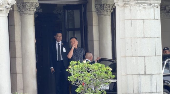 วันที่ 18 ก.พ.2569 ที่ทำเนียบรัฐบาล นายอนุทิน ชาญวีรกูล นายกรัฐมนตรีและรัฐมนตรีว่าการกระทรวงมหาดไทย เดินทางออกจากทำเนียบรัฐบาลในเวลา 16:09 น. โดยระหว่างที่เดินลงมาจากตึกก่อนขึ้นรถกลับ นายกรัฐมนตรี เดินออกมาจากตึกไทยด้วยสีหน้าที่ยิ้มแย้ม และชี้มายังผู้สื่อข่าวที่รอบริเวณด้านหน้าตึกไทยคู่ฟ้า