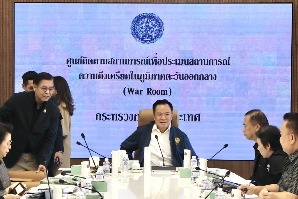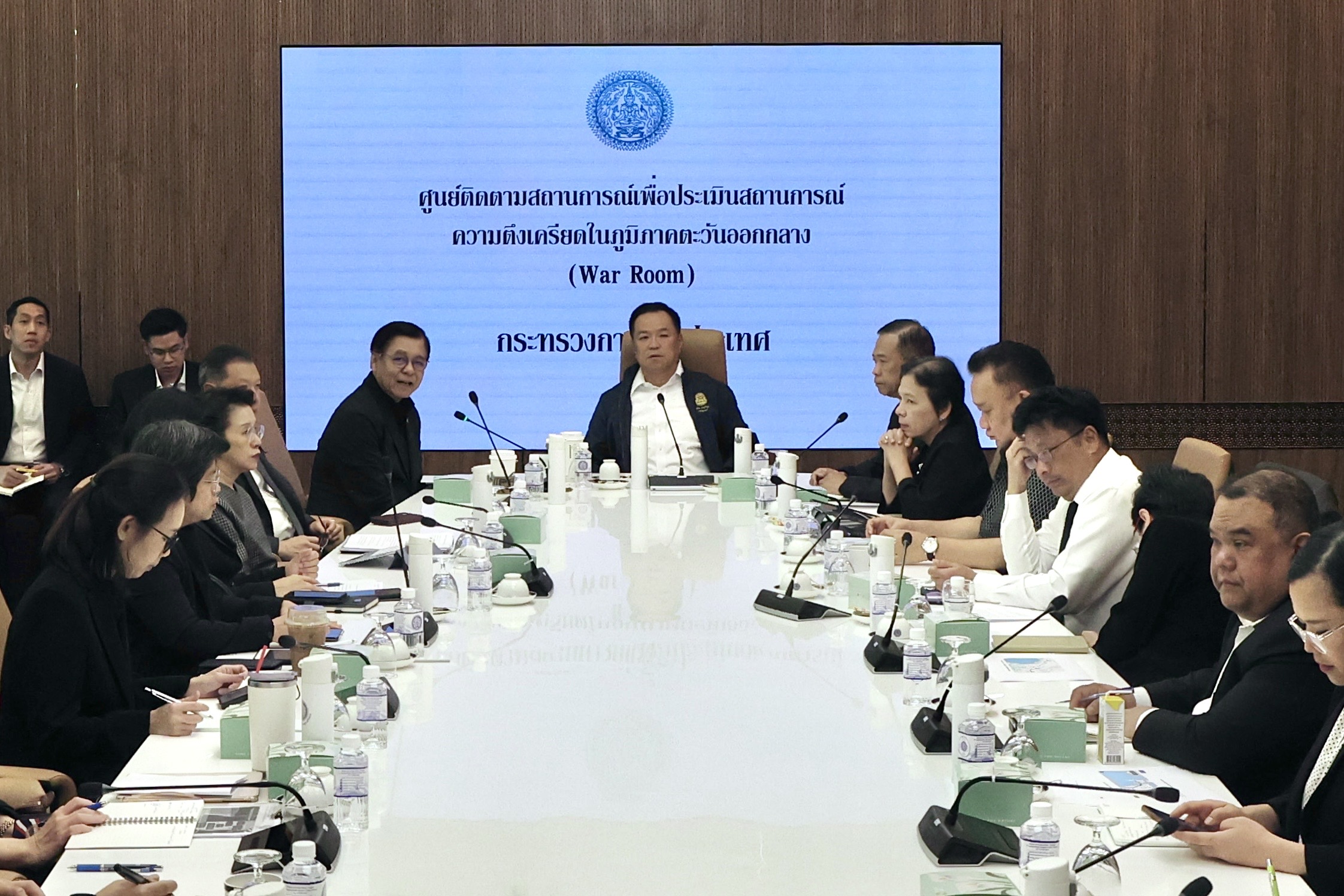 วันที่ 3 มี.ค.2569 ที่กระทรวงการต่างประเทศ นายอนุทิน ชาญวีรกูล นายกรัฐมนตรีและรัฐมนตรีว่าการกระทรวงมหาดไทย ได้เดินทางถึงกระทรวงการต่างประเทศ โดยมี นายสีหศักดิ์ พวงเกตุแก้ว รัฐมนตรีว่าการกระทรวงการต่างประเทศ ให้การต้อนรับ เพื่อเป็นประธานการประชุมศูนย์สถานการณ์เพื่อประเมินสถานการณ์ความตึงเครียดในตะวันออกกลาง โดยมีผู้บริหารกระทรวงการต่างประเทศ อาทิ นายปาณิดล ปัจฉิมสวัสดิ์ รักษาการอธิบดีกรมสารนิเทศและรองโฆษกกระทรวงการต่างประเทศ นางมาระตี นะลิตา อันดาโม รองอธิบดีกรมสารนิเทศและรองโฆษกกระทรวงการต่างประเทศ เข้าร่วมประชุมอย่างพร้อมเพรียง ร่วมกับสถานเอกอัครราชทูตและสถานกงสุลใหญ่ทุกแห่งในภูมิภาคตะวันออกกลาง เพื่อหารือและติดตามความคืบหน้าสถานการณ์ ตลอดจนกำหนดแนวทางการให้ความช่วยเหลือคนไทยที่พำนักอยู่ในภูมิภาคดังกล่าวอย่างใกล้ชิด