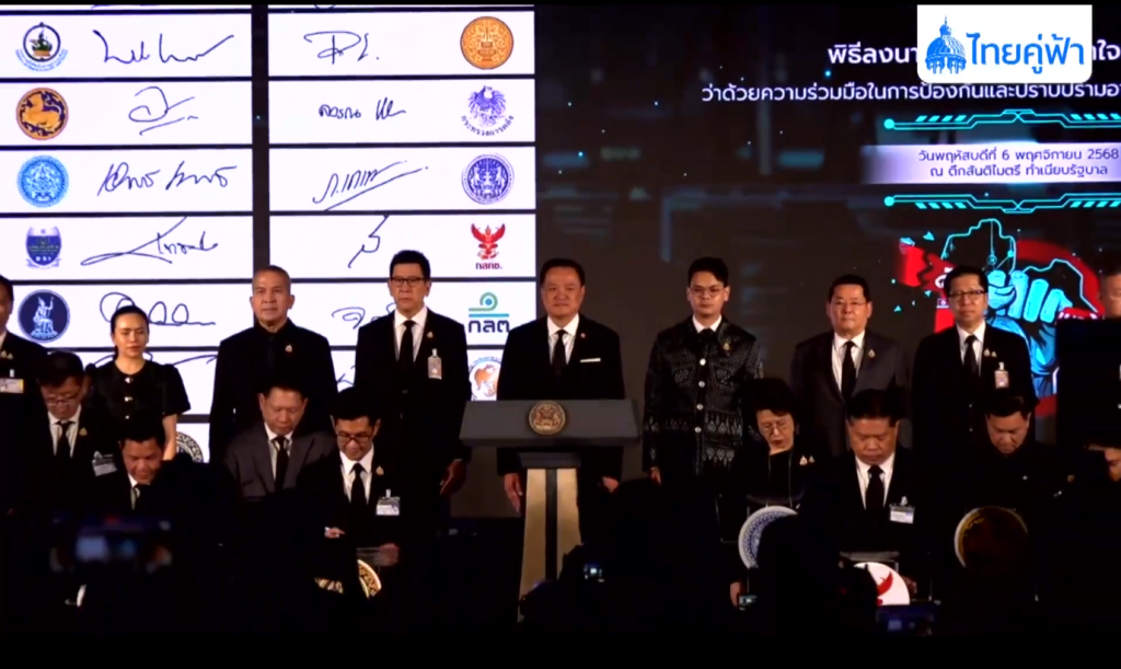 วันที่ 6พ.ย.68 นายอนุทิน ชาญวีรกูล นายกรัฐมนตรี และรัฐมนตรีว่าการกระทรวงมหาดไทย เป็นประธานในพิธีลงนามบันทึกความเข้าใจ (Memorandum of Understanding: MOU) ว่าด้วยความร่วมมือในการป้องกันและปราบปรามอาชญากรรมทางเทคโนโลยี