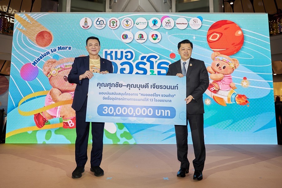 นายศุภชัย เจียรวนนท์ ผู้ก่อตั้งมูลนิธิศุภชัย – บุษดี เจียรวนนท์, ช่อง 3HD, ช่องเวิร์คพอยท์ และช่อง 7HD เปิดตัวโครงการ ‘หมอออร์โธฯ ชวนก้าว เพื่อ 13 โรงพยาบาล’ ชวนคนไทยทั่วประเทศร่วมบริจาค ระดมทุน 100 ล้านบาท เพื่อจัดซื้ออุปกรณ์ทางการแพทย์ด้านกระดูกและข้อที่ทันสมัยให้กับ13 โรงพยาบาลที่ขาดแคลน ซึ่งการบริจาคผ่านโครงการนี้สามารถนำไปลดหย่อนภาษีได้ 2 เท่า พร้อมชวนเดิน-วิ่งการกุศล ภายใต้คอนเซปต์ Mission to Mars พิชิตระยะทาง 60 ล้านกิโลเมตร เทียบเท่าการวิ่งจากกรุงเทพฯ ไปถึง “ดาวอังคาร” ซึ่งจะจัดขึ้นในวันอาทิตย์ที่ 3 พฤษภาคม 2569 ณ มหาวิทยาลัยธรรมศาสตร์ ศูนย์รังสิต นอกจากนี้ ยังสามารถร่วมทำบุญสนับสนุนโครงการผ่านการซื้อสินค้าที่ระลึกสุดเอ็กซ์คลูซีฟจาก ‘น้องเนย’ (Butterbear) ได้อีกด้วย