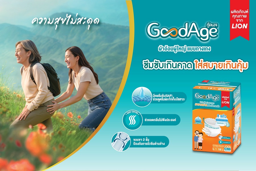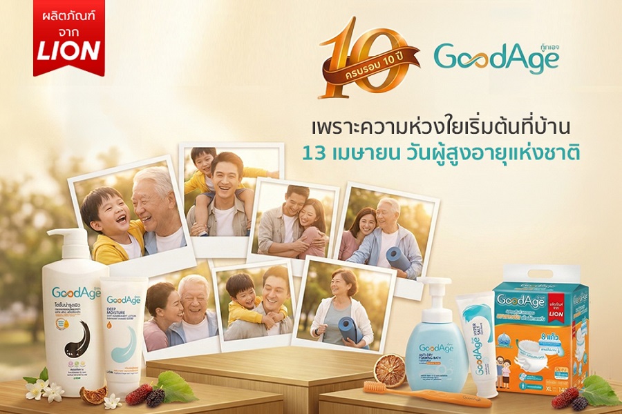 เนื่องในวันผู้สูงอายุแห่งชาติ 13 เมษายน บริษัท ไลอ้อน (ประเทศไทย) จำกัด ในฐานะผู้ผลิตและจำหน่ายสินค้าอุปโภคบริโภคที่อยู่เคียงข้างคนไทยมากว่า 57 ปี ร่วมส่งต่อความใส่ใจผ่านผลิตภัณฑ์แบรนด์ GoodAge ซึ่งได้รับการออกแบบเพื่อการดูแลสุขภาพอย่างอ่อนโยนและครบวงจร ช่วยเสริมความมั่นใจและความสะดวกสบายในการใช้ชีวิตประจำวันของผู้สูงวัย รวมถึงตอบโจทย์การดูแลสุขภาพของทุกคนในครอบครัว