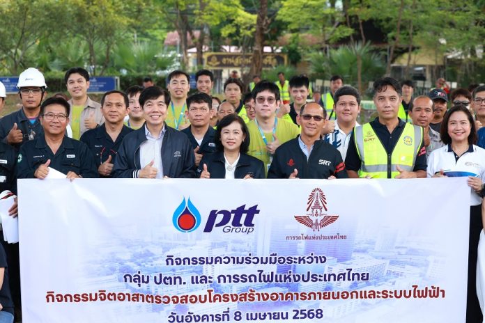 นางมีนา ศุภวิวรรธน์ ผู้ช่วยกรรมการผู้จัดการใหญ่บริหารชื่อเสียงองค์กรและกิจการเพื่อสังคม บริษัท ปตท. จำกัด (มหาชน) (ปตท.) เป็นประธานในพิธีเปิด “กิจกรรมจิตอาสาตรวจสอบโครงสร้างอาคารภายนอกและระบบไฟฟ้า” โดยวิศวกร กลุ่ม ปตท. และจิตอาสาจากการรถไฟแห่งประเทศไทย (รฟท.) จำนวนกว่า 50 คน ร่วมตรวจสอบสภาพอาคารที่พักชุมชนรถไฟ กม.11 ที่ได้รับผลกระทบจากสถานการณ์แผ่นดินไหว จำนวน 21 อาคาร เพื่อสร้างความมั่นใจและความปลอดภัยในการพักอาศัยของประชาชนในพื้นที่ โดยมีการบรรยายให้ความรู้ “การเตรียมความพร้อมรองรับสถานการณ์ฉุกเฉิน” นอกจากนี้ จิตอาสานักจิตวิทยา ภายใต้โครงการสุขใจดี ของ ปตท. ยังได้จัดกิจกรรมฟื้นฟูสภาพจิตใจหลังสถานการณ์แผ่นดินไหว พร้อมให้คำปรึกษา เพื่อให้ผู้อยู่อาศัยในชุมชน คลายความวิตกกังวล ทั้งนี้ นายศิรศักดิ์ จันเทรมะ กรรมการผู้จัดการใหญ่ บริษัท เอนเนอร์ยี่ คอมเพล็กซ์ จำกัด ยังได้ร่วมมอบเครื่องดื่มวิตามิน Envit เพื่อสนับสนุนการจัดงานอีกด้วย