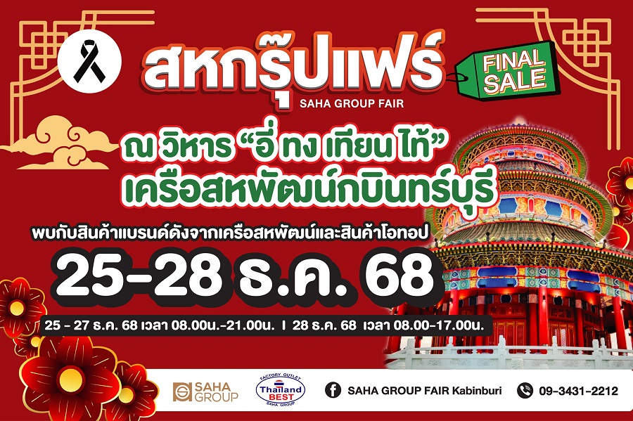 กบินทร์บุรีเตรียมสะเทือน! “สหกรุ๊ปแฟร์ Final Sale”มหกรรมช้อปหยุดโลกส่งท้ายปี ปักหมุดช้อปด่วน!