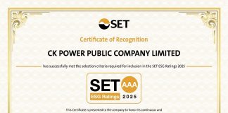”CKPower”ได้รับการประเมินกิจการ CGR ปี68 ในระดับ”ดีเลิศ”ต่อเนื่องเป็นปีที่ 8