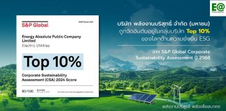 ‘EA’ ตอกย้ำจุดยืนด้าน‘พลังงานสะอาด’ คว้าท็อป10%ผู้นำด้านความยั่งยืนโลก