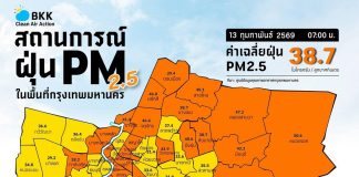 ค่าฝุ่นในกทม.ค่าเฉลี่ย 38.7 มคก./ลบ.ม. ‘สีส้ม’ 29 เขตเริ่มส่งผลกระทบต่อสุขภาพ